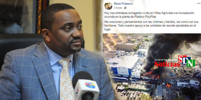 Santo Domingo Norte. – El alcalde de Santo Domingo Norte, René Polanco ha expresado su pesar a través de sus redes, sobre el incendio producido en el día de hoy en la empresa Polyplas del sector de Villa Agrícolas.
