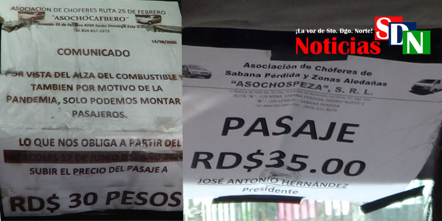 Los choferes de las rutas que viajan desde Sabana Perdida hacia Los Mina, no se quedaron atrás, y comenzaron cobrando en principio RD$30 pesos, y ya, están cobrando RD$35.