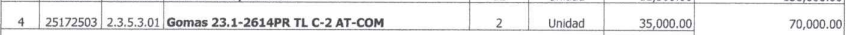 Y en la última casilla se encuentra un total de 2 Gomas 23.1-2614 PR TL C-2 AT-COM, con un precio estimado por unidad de RD35,000.00 para un total de RD 70,000.00, aquí todo bien.![]()