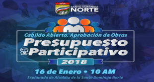 Por Jarlen Espinosa El Ayuntamiento de Santo Domingo Norte ha convocado a las instituciones comunitarias, medios de comunicación y público en general, para la realización del Cabildo Abierto para la aprobación del Presupuesto Participativo Municipal 2018. La actividad se estará desarrollando este martes 16 de enero, a partir de las …