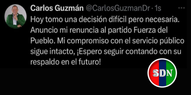 Santo Domingo Norte, RD. – Luego de estar meditando aproximadamente durante un mes y medio, el alcalde Carlos Guzmán ha anunciado su salida del que fuera su partido, la Fuerza del Pueblo (FP).