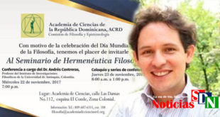 Funte externo Santo Domingo– Con motivo del Día Mundial de la Filosofía, el profesor y filósofo de la Universidad Antioquia de Colombia, doctor Andrés Contreras, participará en varias actividades este miércoles 22 y jueves 23 de noviembre en la Academia de Ciencias de la República Dominicana. La primera actividad se …