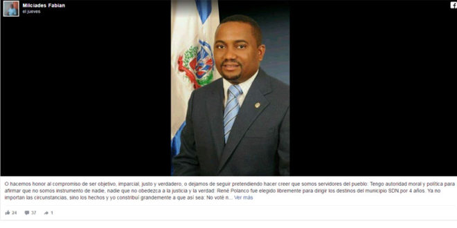 Fabian dice haber votado y trabajado para lograr que el actual Alcalde de SDN, René Polanco lograra alcanzar el cargo que hoy ostenta, pero, deploró algunas acciones que se habrían estado empleando.