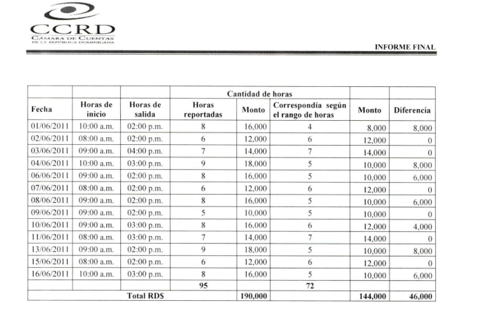 Cada hora eran pagadas a RD$ 2,000 pesos, y justamente ahí es donde la Cámara de Cuentas encontró «un maco».