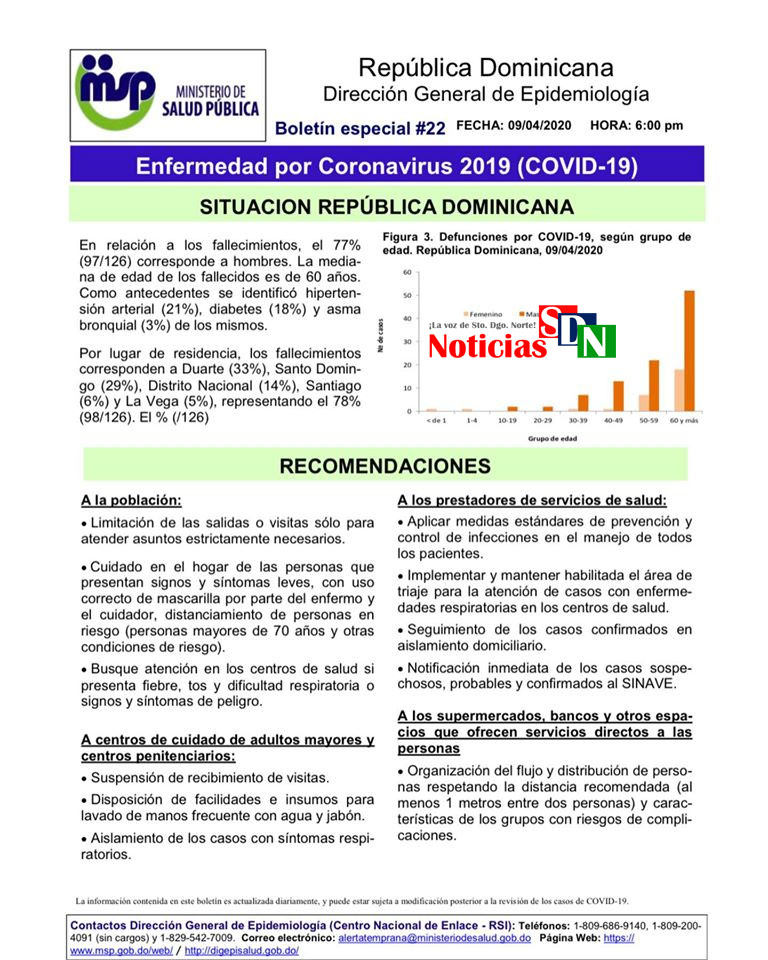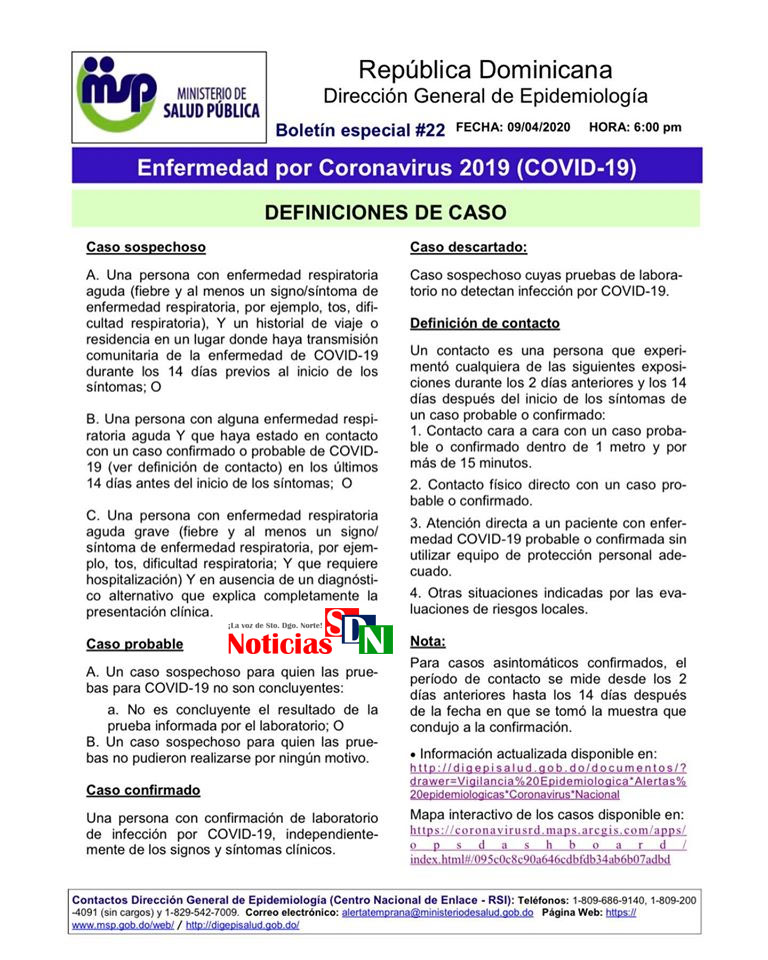 Santo Domingo. – Con el pasar de los días, en cada reporte del Ministerio de Salud Pública (MSP), se nota un avance progresivo del coronavirus (COVID-19) en el país, cada vez son más contagiados.