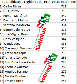 A continuación colocaremos los precandidatos danilístas y leonelístas, según la cantidad de votos y lugar obtenido de forma descendiente entre los 17 más votados.