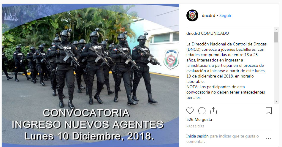 Santo Domingo. – La Dirección Nacional de Drogas- DNCD– ha realizado un comunicado a través del cual invita a los interesados a pertenecer a la institución a evaluarse a partir del próximo lunes 10 de diciembre.