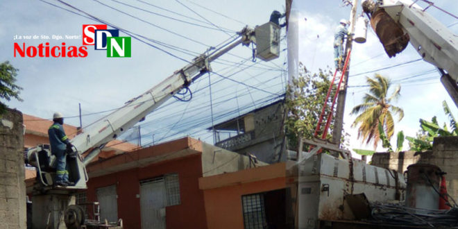 Empleados de la Empresa Distribuidora de Electricidad del Este, EDEESTE, repararon el servicio eléctrico en Cuesta Linda de Sabana Perdida.