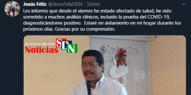 Santo Domingo Norte. – Jesús Féliz quien fue el primer alcalde que ha tenido el Partido de la Liberación Dominicana (PLD), ha revelado está contagiado de COVID-19, por lo que se mantendrá aislado en su hogar.