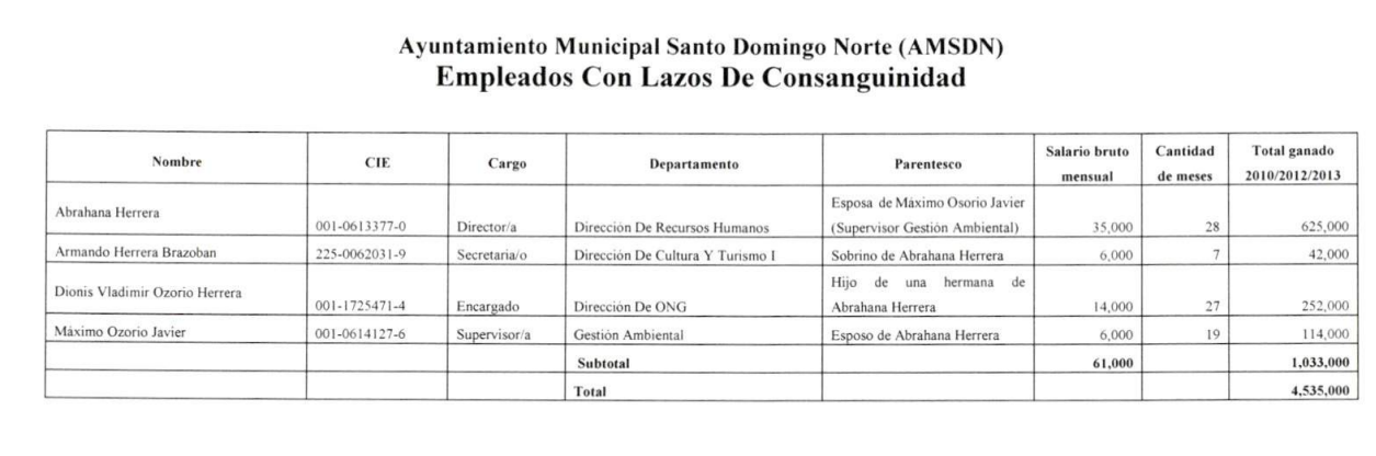 Y Armando Herrera Brazoban (el sobrino), estuvo como secretario en la Dirección de Cultura y Turismo cobrando RD$ 6 mil pesos.