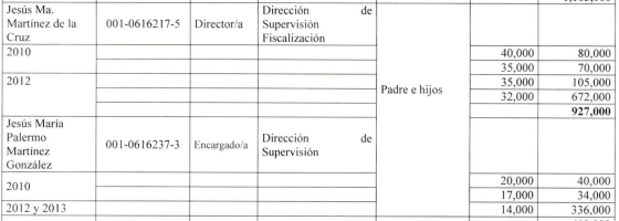 Pero el hijo de Jesús, Jesús María Palermo Martínez González, llego a cobrar entre RD$ 14 mil a RD$ 20 mil, como encargado de la Dirección de Supervisión.