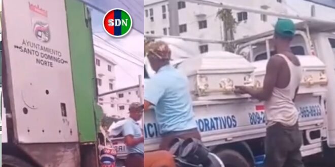 Santo Domingo Norte, RD. – Desde el Ayuntamiento de Santo Domingo Norte (ASDN), alguien debería aclarar lo que muestra un vídeo viral en las redes sociales, en donde un camión recolector estaba estacionado de espalda a otro camión que tenía dos ataúdes, los que aparentemente serían colocados en uno de los vehículos encargado de recoger la basura en el municipio.