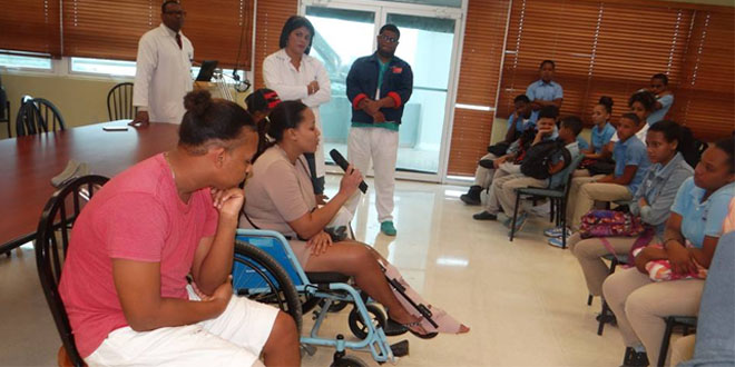 Los estudiantes de la escuela Padre Sindulfo escucharon los testimonios de los pacientes Freddy de Jesús, quien lleva tres meses con una lesión en una de sus extremidades y desde entonces está incapacitado, quien asegura que su esposa debe cubrir los gastos del hogar y de sus medicamentos.