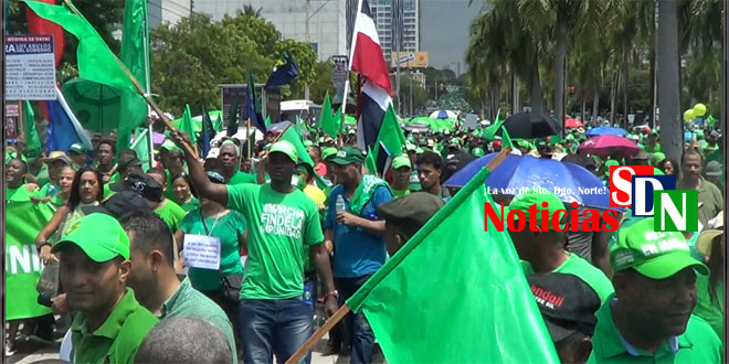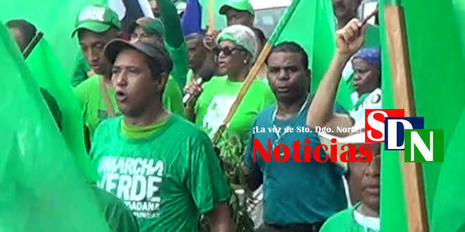 Trompetas, banderas verdes acompañando la bandera dominicana, eran movidas de un extremo a otro, la energía de los que marchaban no se desvanecía, como si cada paso le diera más razones para continuar.