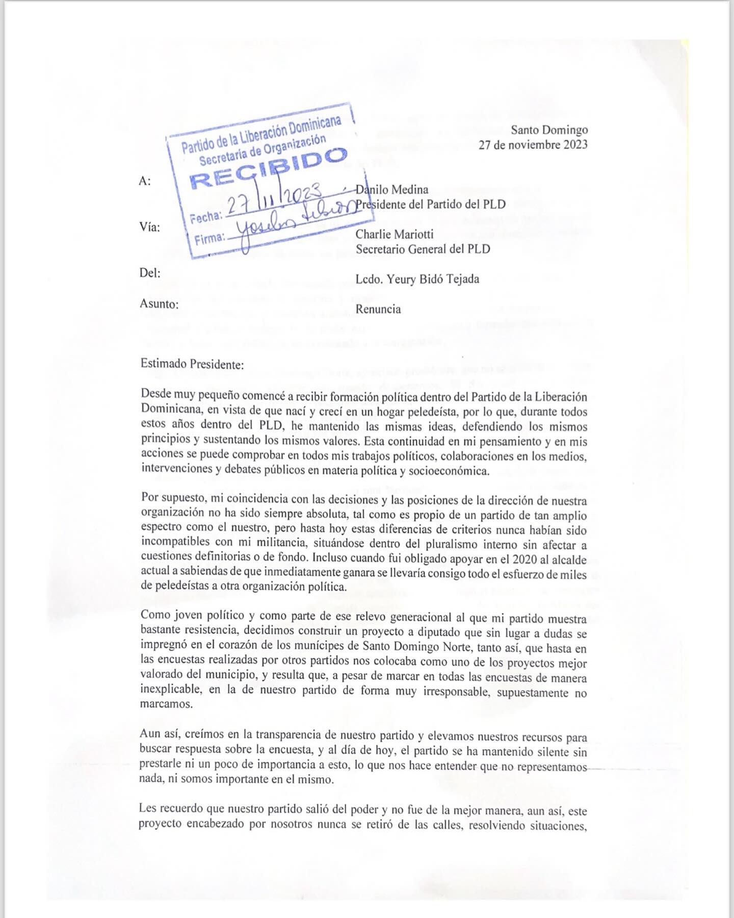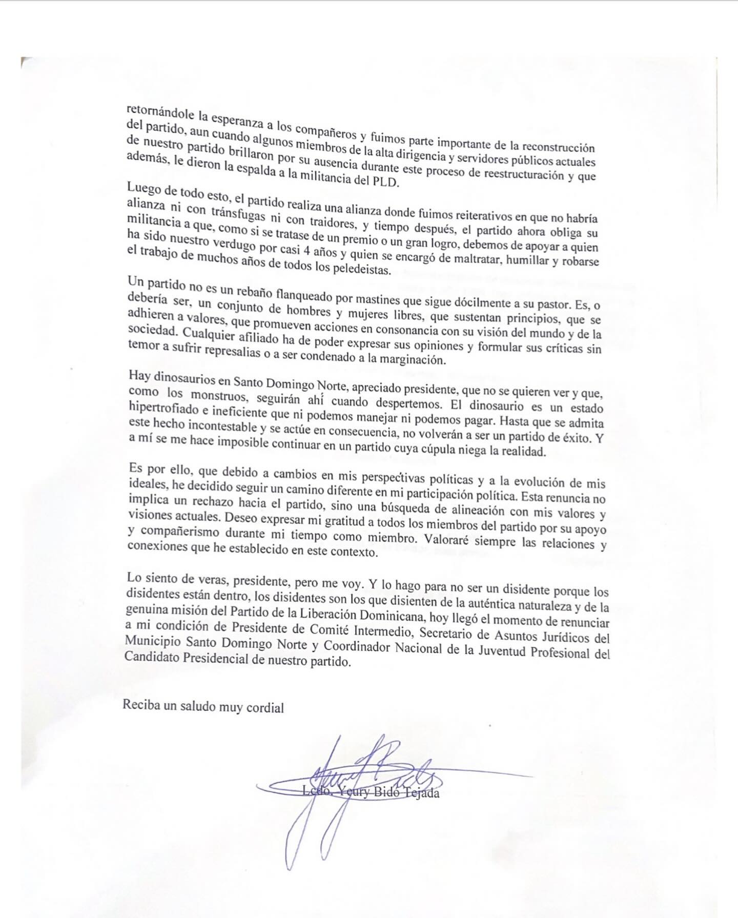 Pero no todo estaba perdido para los intereses políticos de Yeury, quien el 27 de noviembre del 2023 decidió renunciar al PLD.