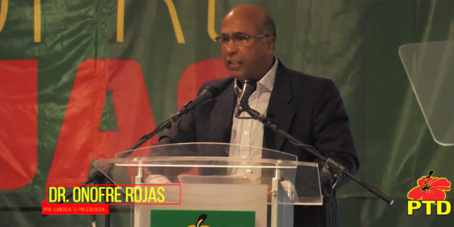 Acompañado de cientos de ciudadanos y militantes del PTD, el Dr. Onofre Rojas presentó este domingo 10 de marzo la Pre-candidatura a la Presidencia de la República a través del Partido de los Trabajadores Dominicanos.