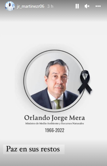 «Mis mas sentidas condolencias a los familiares de Orlando Jorge Mera ante este hecho que nos ha consternado a todos.