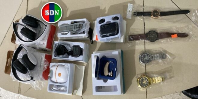 Gracias a la rápida acción policial, fue recuperada la mercancía, entre la cual figuran relojes inteligentes (smartwatches), audífonos bluetooth, cables USB y un dispositivo electric foot grinder, entre otros. En el lugar también se ocupó un pico de hierro utilizado para romper una ventana de cristal del local.