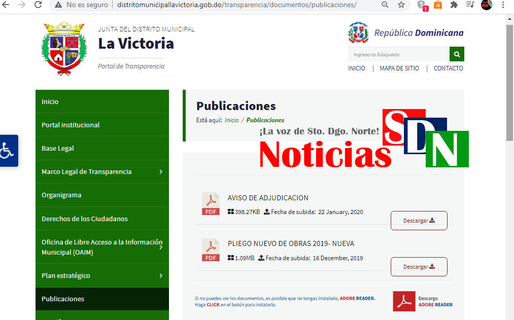 Sobre las publicaciones solo aparecen dos documentos, uno referente a un pliego de obras del 2019, publicado el 16 de diciembre de ese mismo año, y el otro, un aviso de adjudicación con fecha del 22 de enero del 2020.