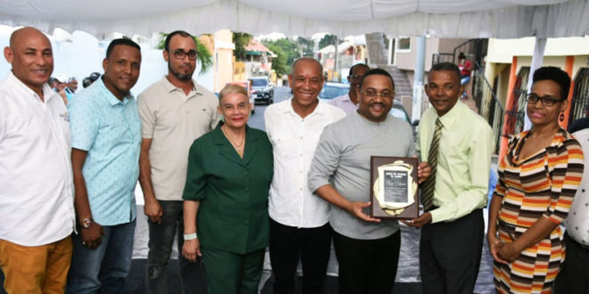 Muy alegres los vecinos al ver sus calles asfaltadas, decidieron organizar una actividad de agradecimiento en la que entregaron una placa al alcalde de la mano del presidente de Junta de Vecino, Juan Luis Rodríguez y otros comunitarios entre ellos el empresario Milciades Mateo.