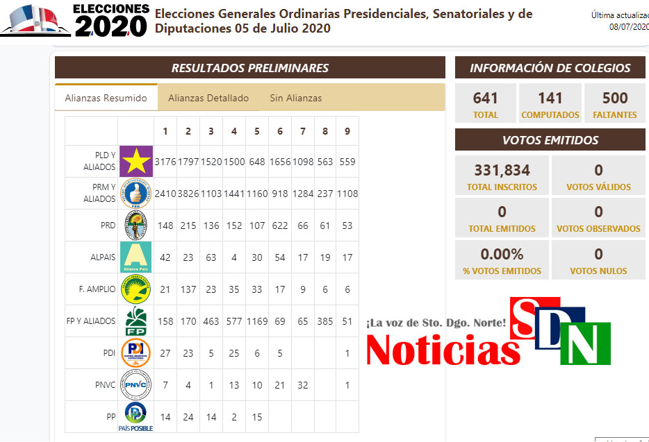 Santo Domingo Norte. – Un total de 141 colegios electorales han sido computados en torno a los votos de los candidatos a diputados/as, de 641 que existen en Santo Domingo Norte.