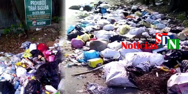 La munícipe envió un vídeo a este medio en donde se muestra un gran cúmulo de basura, pese a que en el lugar se encuentran varios letreros colgados entre ellos los que coloca el Ayuntamiento de Santo Domingo Norte.